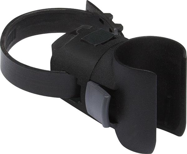 This bracket is for convenient carrying of Steel-O-Flex, cable, and coil cable locks – Enables transporting the lock on the seat post, on the frame, or on the rack stays – Compatible with frame diameters of 15 – 55mm – Simple mounting without tools