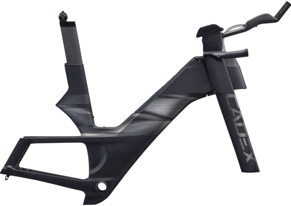 This is a no-holds-barred triathlon machine—no restrictions, no limitations. The CADEX Tri frameset is designed, engineered and put to the test by the world’s fastest triathletes in a bold quest to push the sport forward. Created in conjunction with Ironman World Champion Kristian Blummenfelt’s attempt to break the seven-hour mark for the Ironman distance, a project dubbed Sub7, it features a radical monocoque frame, wide-spread fork legs and horizontal seatstays. The massive down tube doubles as a race-ready storage system, making hydration and nutrition easily accessible. And its wide-ranging adjustability makes it quick and easy to dial in over 1,000 fit configurations for personalized performancePERSONALIZED FIT- The CADEX Tri frameset makes it easier for athletes of all heights and body dimensions to achieve a perfect fit. Using real-world dimensional as well as stack and height data collected from pro and amateur triathletes, CADEX created five frame sizes and then configured ways for any rider, no matter what frame size they choose, to easily adjust critical fit factors.ENDURANCE AERODYNAMICS- Aero performance goes beyond wind-tunnel data. Using AeroSystem Shaping Technology to create a radical wide-spread, bladed fork, horizontal seatstays and other drag-reducing frame features—along with optimal rider position for Ironman racing—CADEX Tri is about achievable real-world gains.RACE-READY INTEGRATION- The unique chassis of the CADEX Tri frameset—a massive down tube with no top tube—offers a complete hydration, nutrition and tool storage solution fully integrated into the frame. This design lets riders hydrate and refuel quickly and conveniently from the seated aero riding position while remaining totally self-sufficient on the course.TOTAL EFFICIENCY- Engineered with the highest grade T1000 carbon fiber and cutting-edge layup techniques, the CADEX Tri frameset boasts class-leading pedaling and torsional stiffness with a total weight of just 4577 grams. Combined with ultra-adaptable fit, groundbreaking endurance aero technology, and a completely integrated hydration and nutrition system, the result is zero watts wasted.COMPLETE TRAVEL SOLUTION- The CADEX Tri frameset minimizes the amount of disassembly and reassembly needed and comes with a purpose-built, high-impact resistant Topeak travel case featuring airport-friendly wheels, a full interior protection system and built-in work stand.